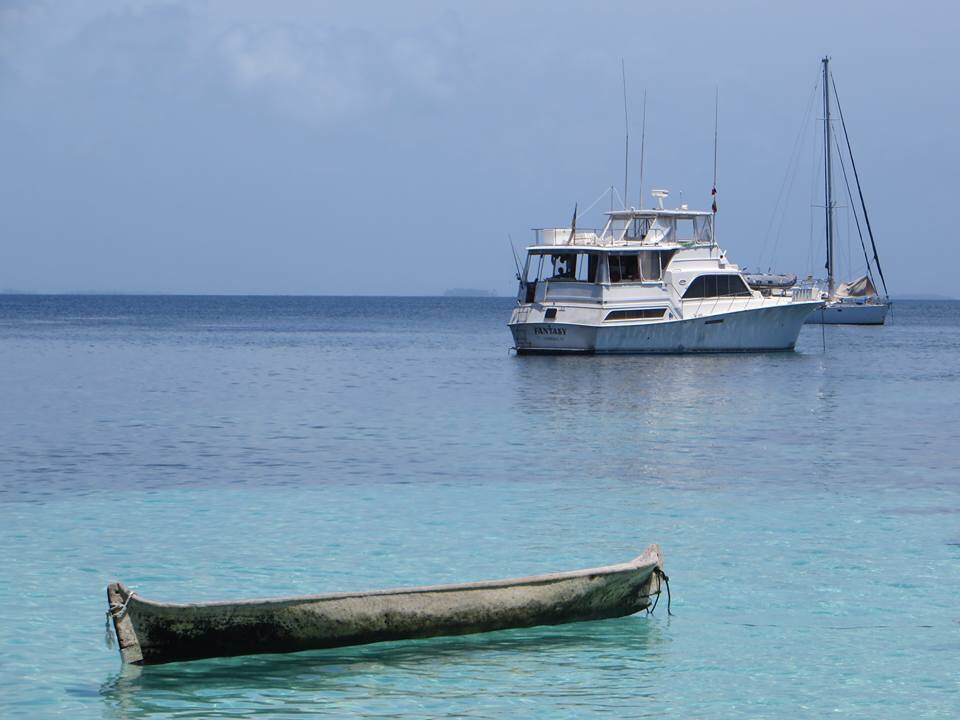 While intellectual conversations about the Kuna were admittedly depressing, our interactions with and among the people were wonderful. One evening, we filled up empty beer cans with sea water and rolled coconuts in an impromptu game of bowling, which we shared with the young boys watching and laughing with glee. Another night, several young women joined in a game of volleyball and promptly destroyed us – we joked that volleyball was the national game of the island. Muscular dogs trained to catch lobster in the surf played catch with our frisbee, and a dozen different canoes approached our boats to say hi and climb around the non-wooden boat. And there was snorkeling, and diving and so much drinking, and all in all my time in the San Blas Islands make up the kind of travel blog that people back at home get sick of reading about. Suffice to say, I will miss that place.